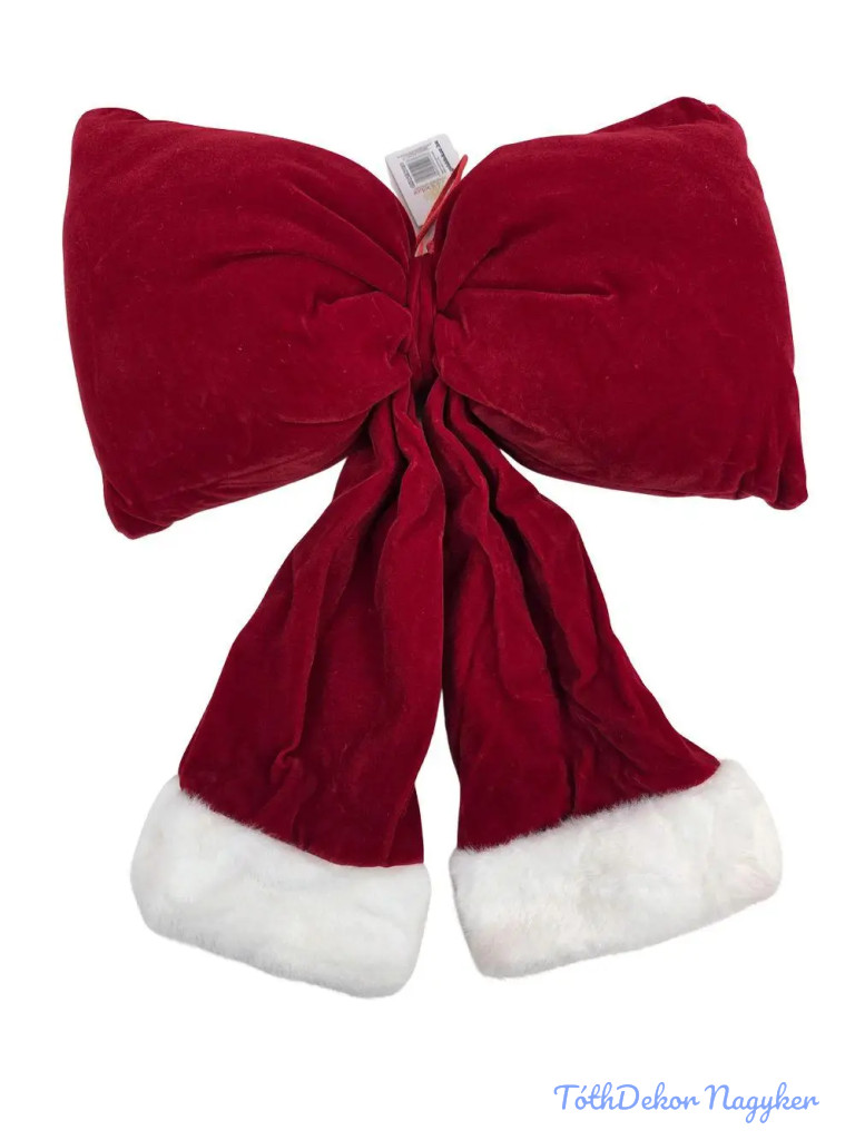 Ajtó masni - Piros fehér szörmés végű 30 cm