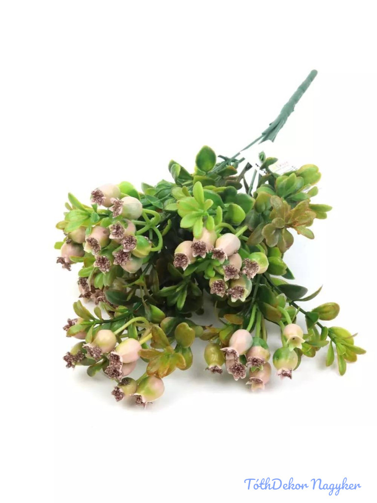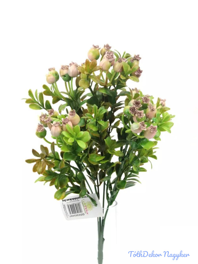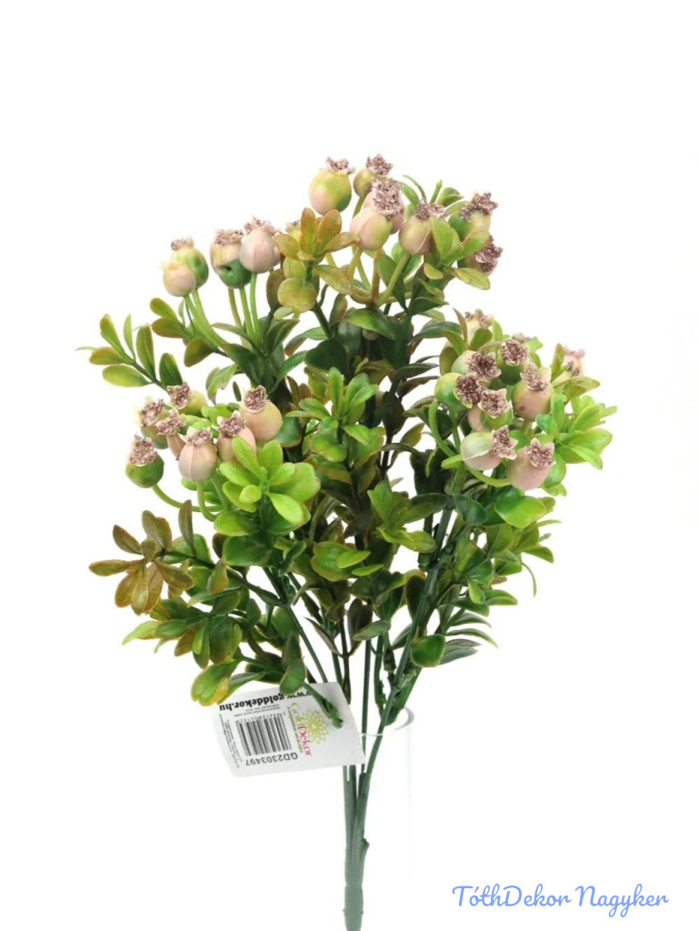 Antik csipkebogyós műzöld csokor 32 cm - Rózsaszín
