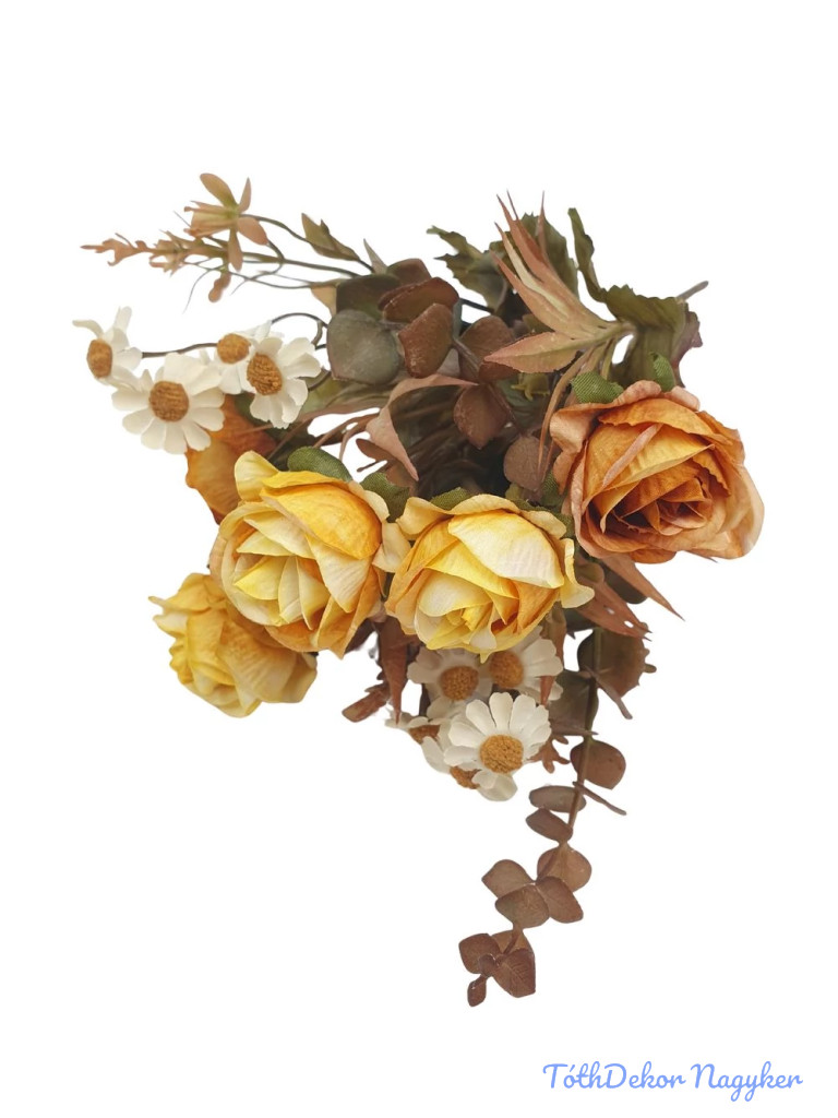 Antik színű rózsa + kis virágos csokor 29cm - Antik Sárga