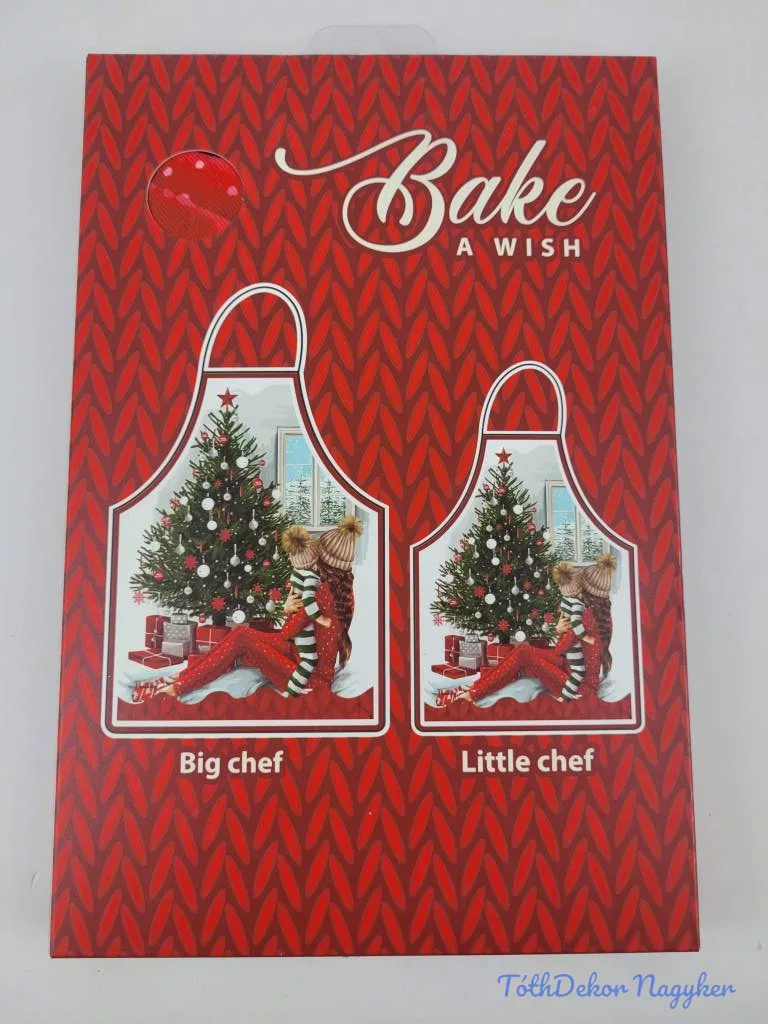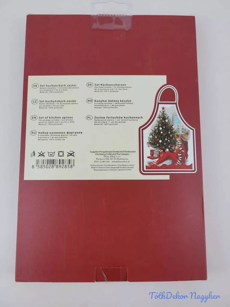 Az ár egy szettre vonatkozik. A szett tartalma egy felnőtt és egy gyerek méretű kötény. Anyaguk 100% poliészter. A doboza enyhén nyomott lehet.