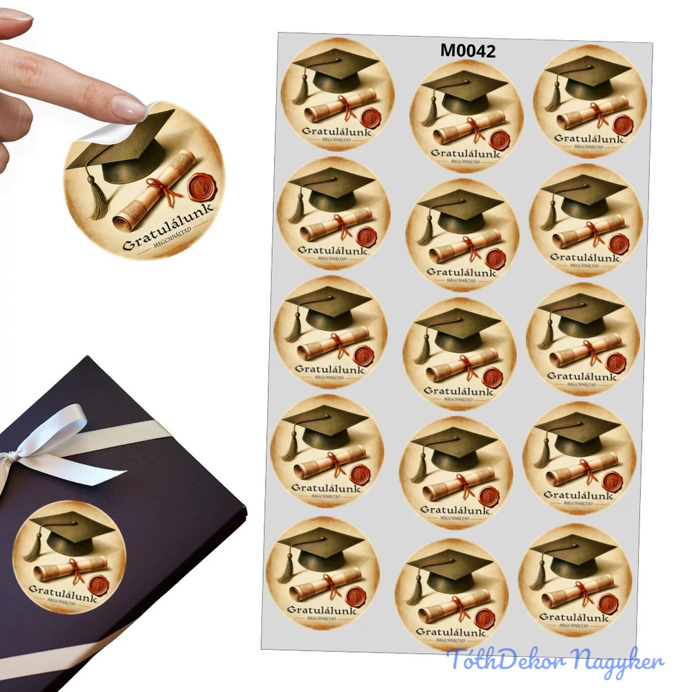 Ballagási kerek matrica - Gratulálunk 15db/lap