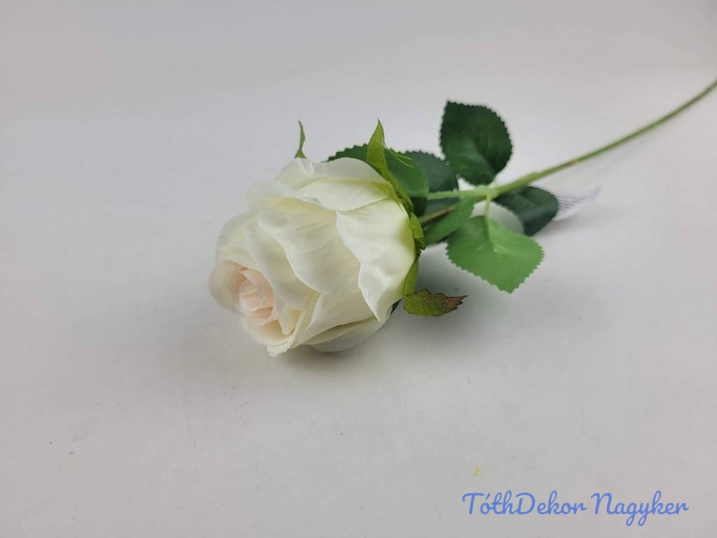 Bimbós rózsa szálas selyemvirág 52cm - Krém-Rózsaszín középpel