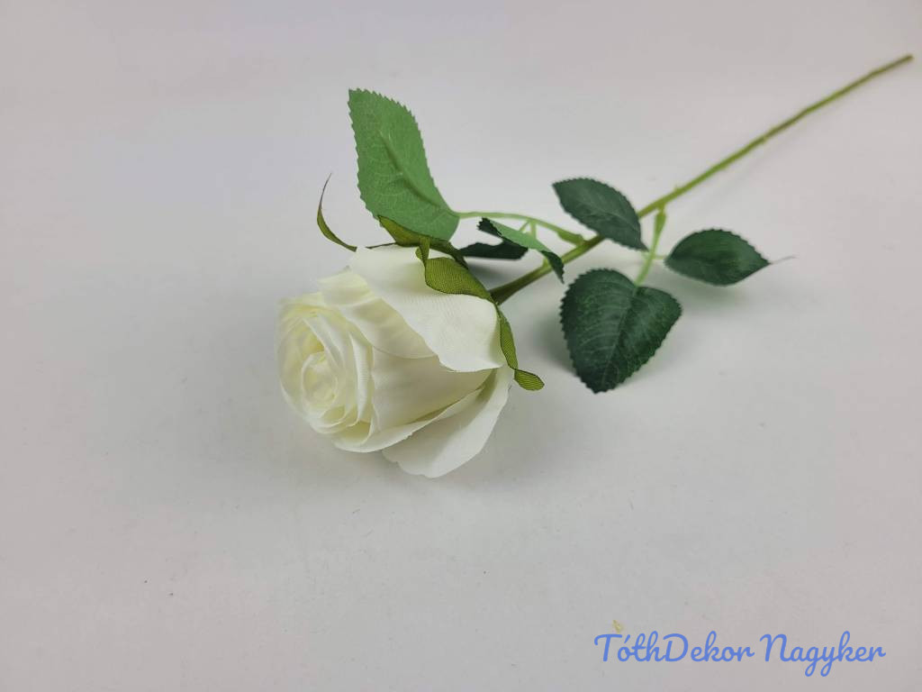 Bimbós rózsa szálas selyemvirág 52cm - Törtfehér