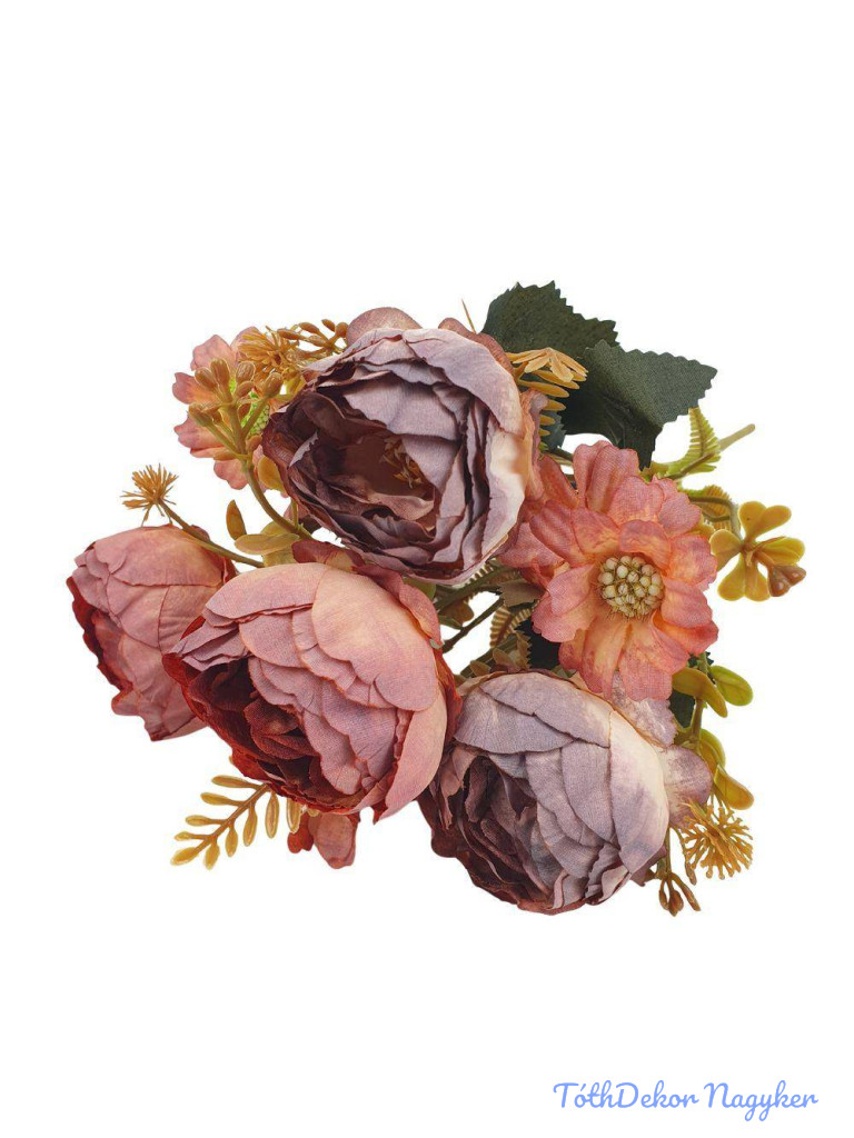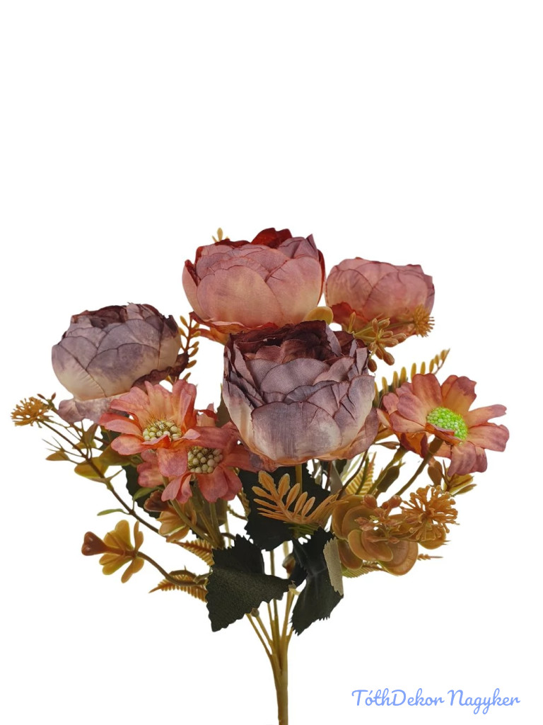 Boglárka 4 fejes selyem csokor 30cm - Antik Barack