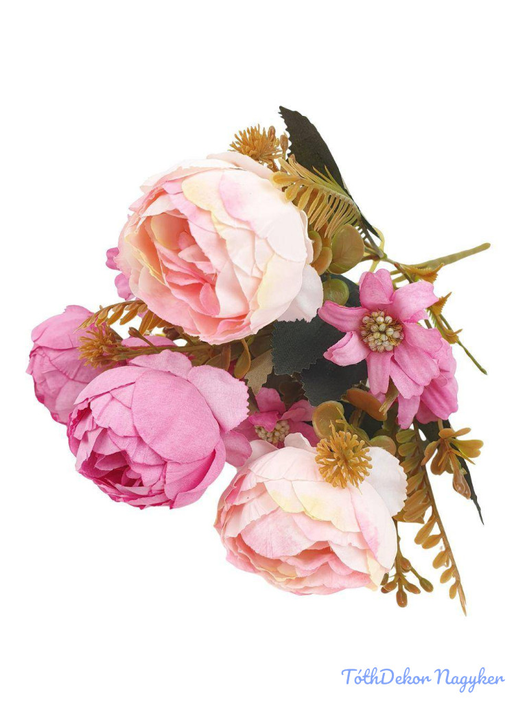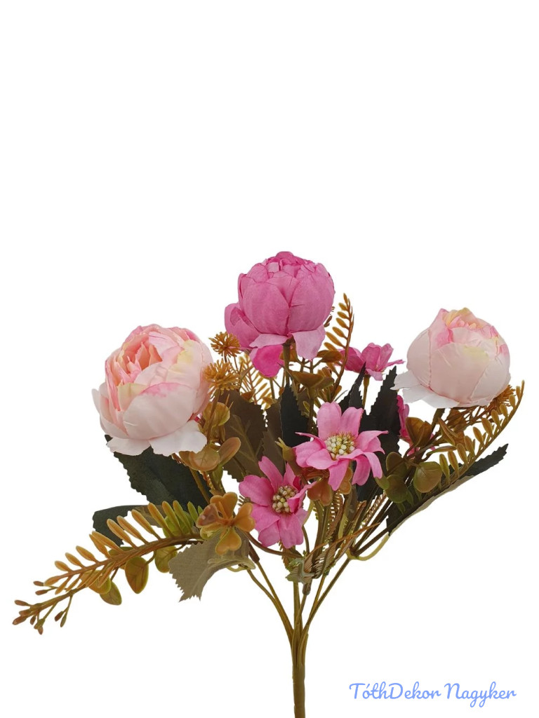 Boglárka 4 fejes selyem csokor 30cm - Rózsaszín-Pink
