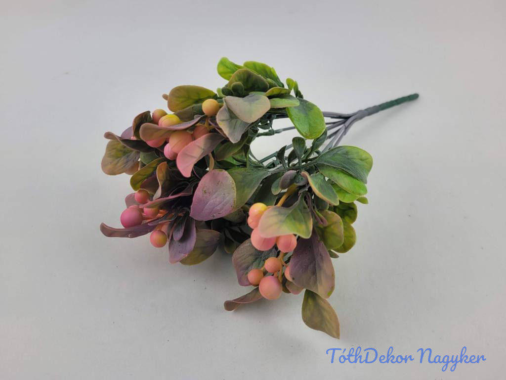 Bogyós 7 ágú mű díszítő csokor 27 cm - Rózsaszín