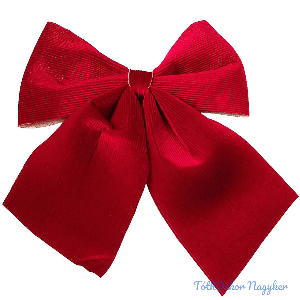 Bordázott bársony masni, 28 x 34cm - Piros