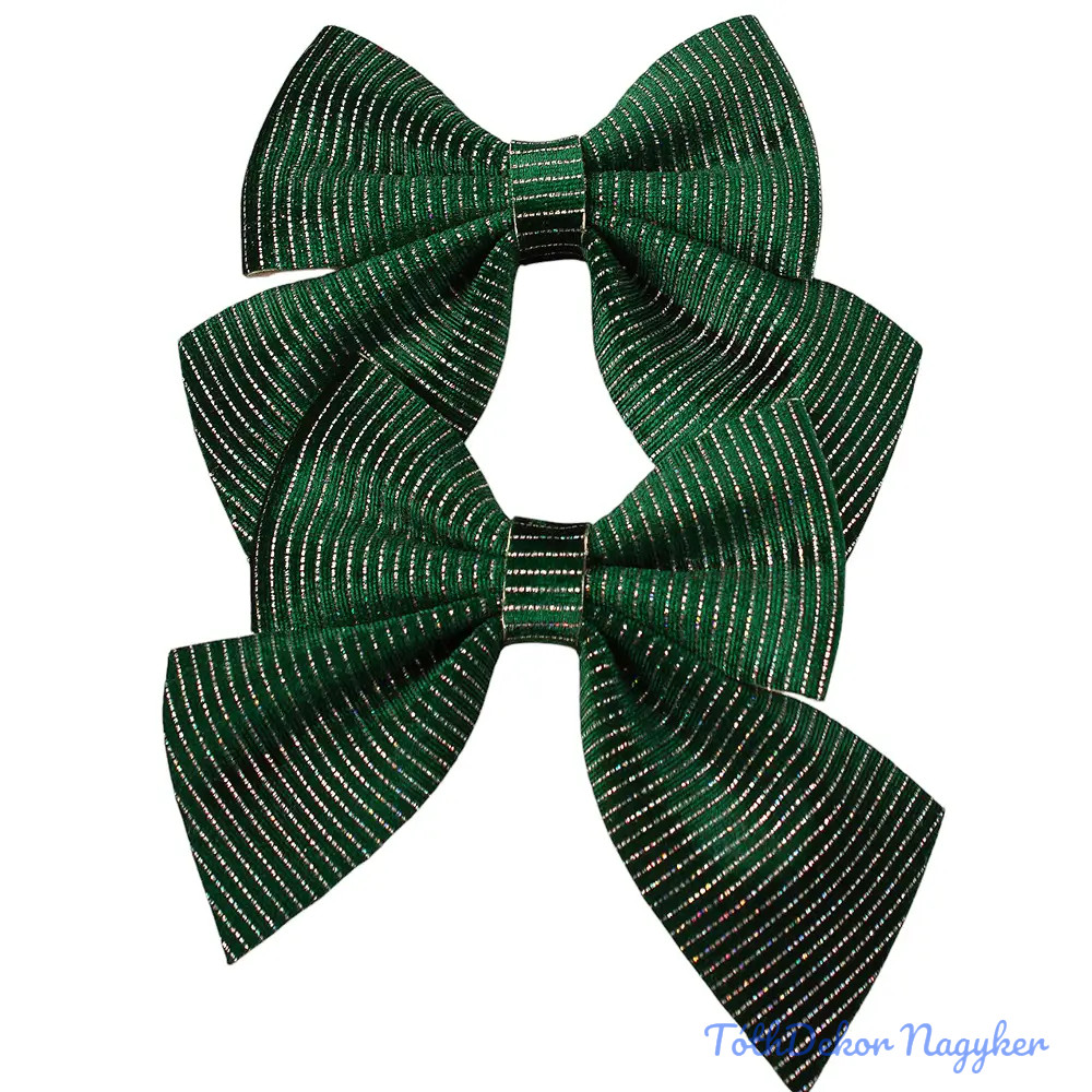 Csíkos bársony masni készlet, 12 x 13cm, 2db. - Sötétzöld