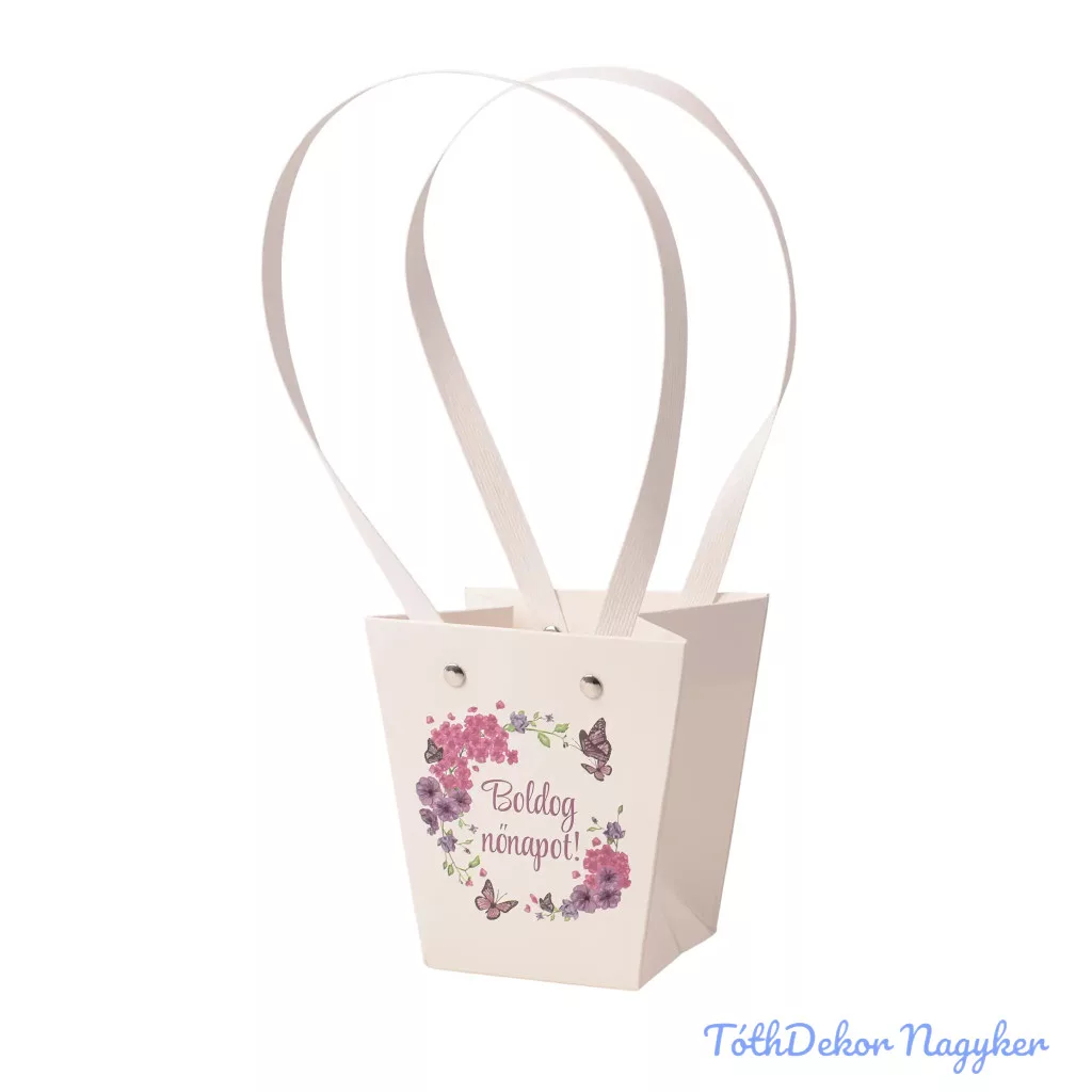 Feliratos virágtáska 12x8x12,5cm - Boldog nőnapot!