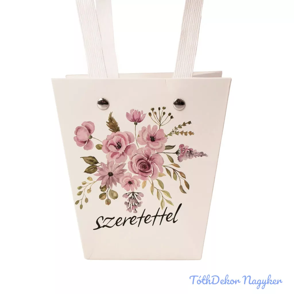 Feliratos virágtáska 12x8x12,5cm - Szeretettel