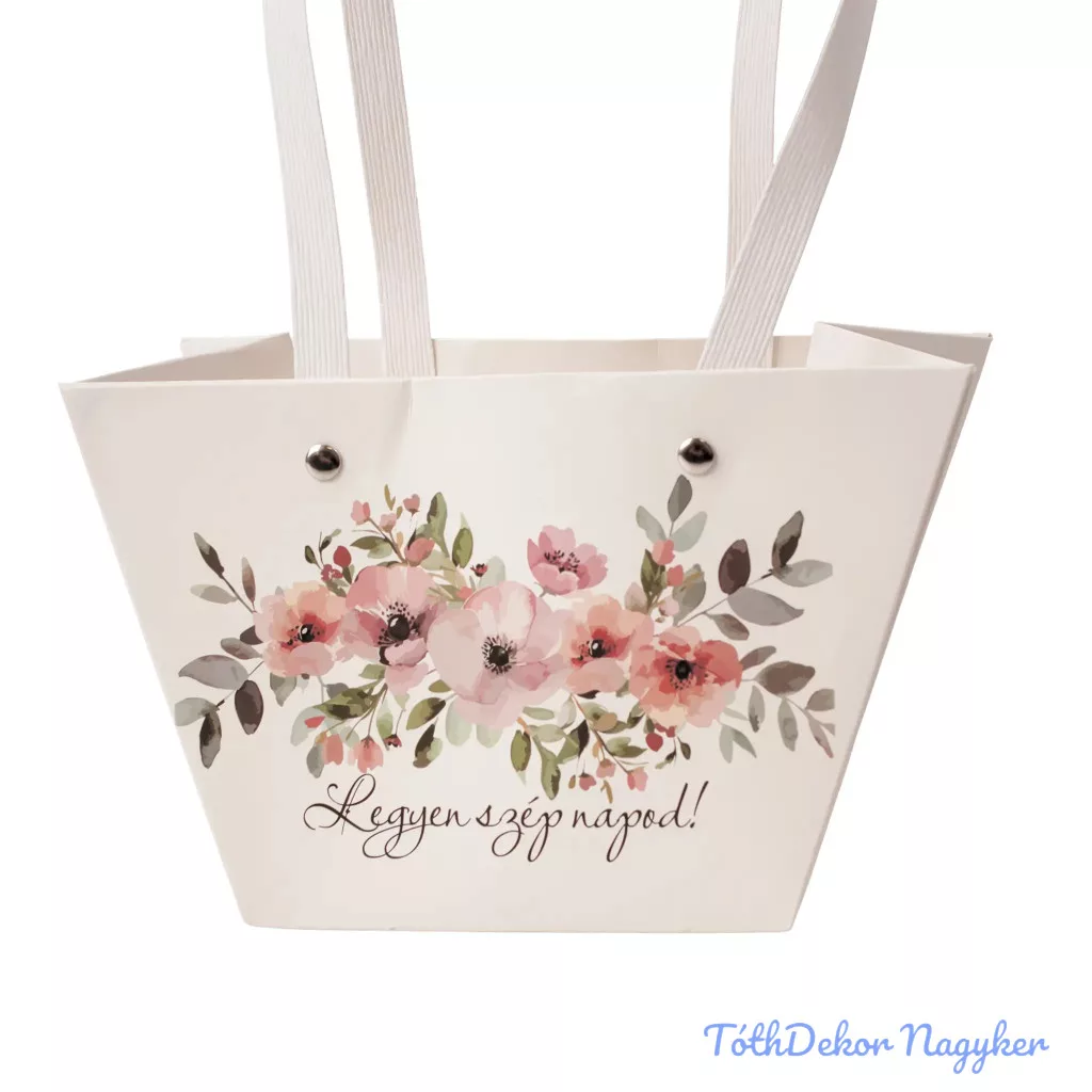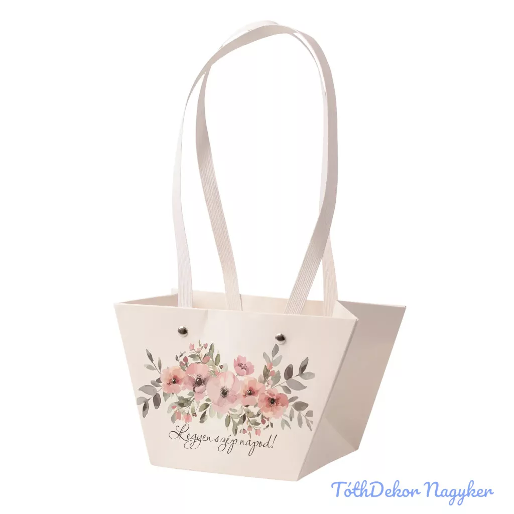 Feliratos virágtáska 20x12x12cm - Legyen szép napod!