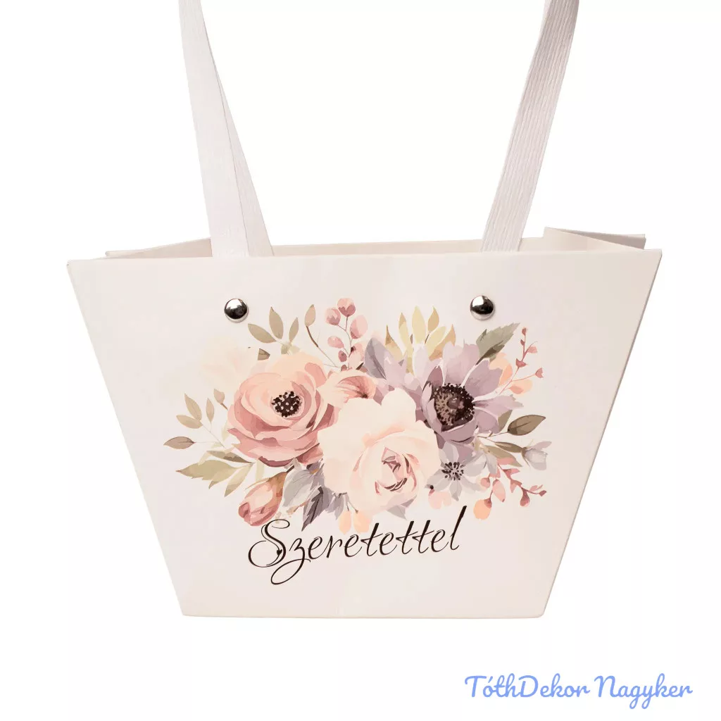 Feliratos virágtáska 20x12x12cm - Szeretettel