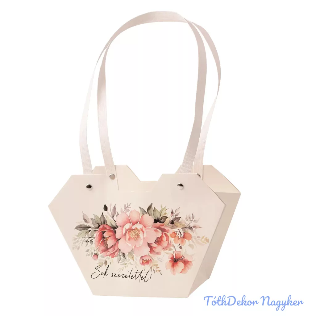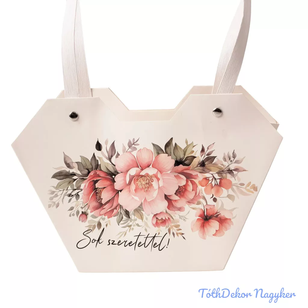Feliratos virágtáska 23,5x12,5x35cm - Sok szeretettel
