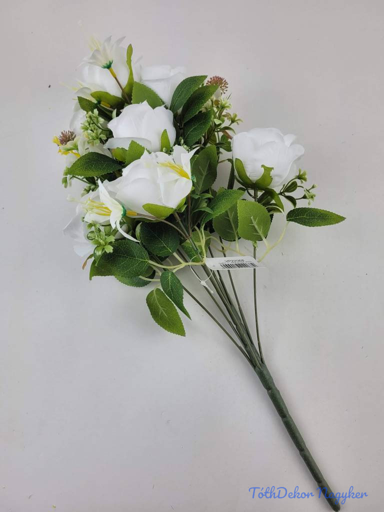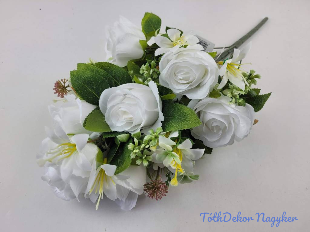 Féloldalas 9 ágú rózsa selyemvirág csokor 48cm - Fehér
