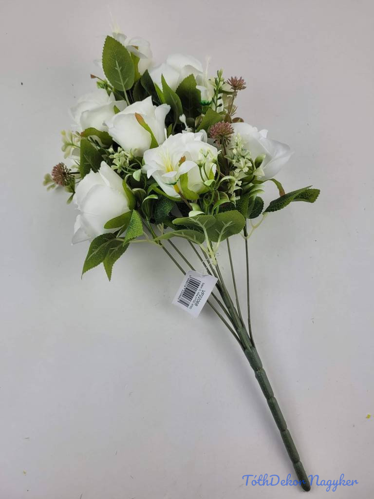Féloldalas 9 ágú rózsa selyemvirág csokor 48cm - Törtfehér