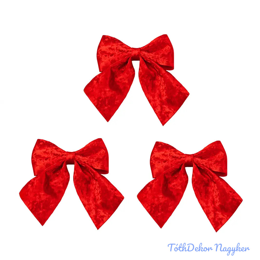 Fényes bársony masni készlet, 9 x 10cm, 3db. - Piros