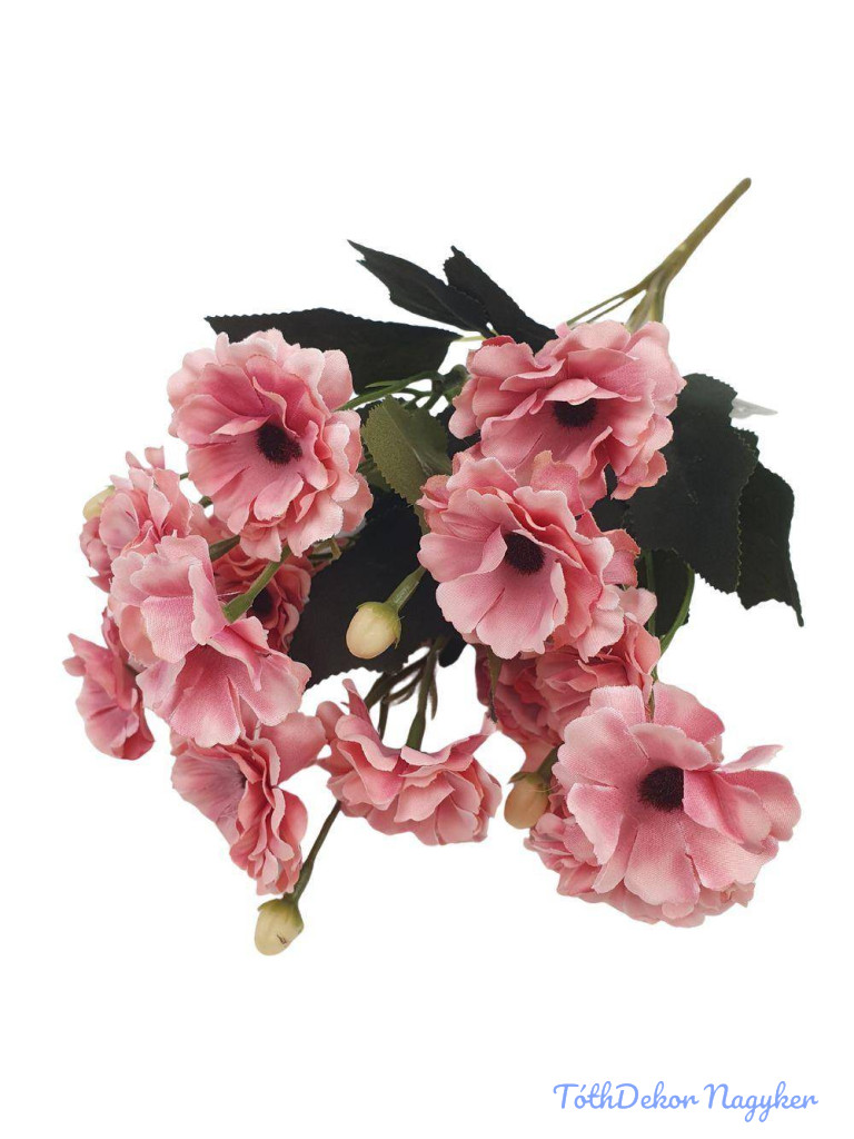 Fodros szirmú selyem csokor 35cm - Fáradt Rózsaszín