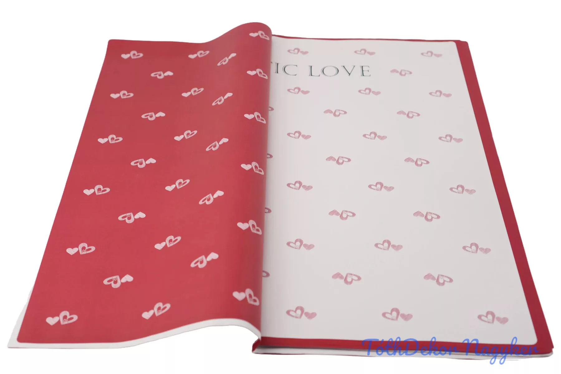 Fólia ív 56x56cm 20db/cs - Fehér alapon szivecskés - Bordó