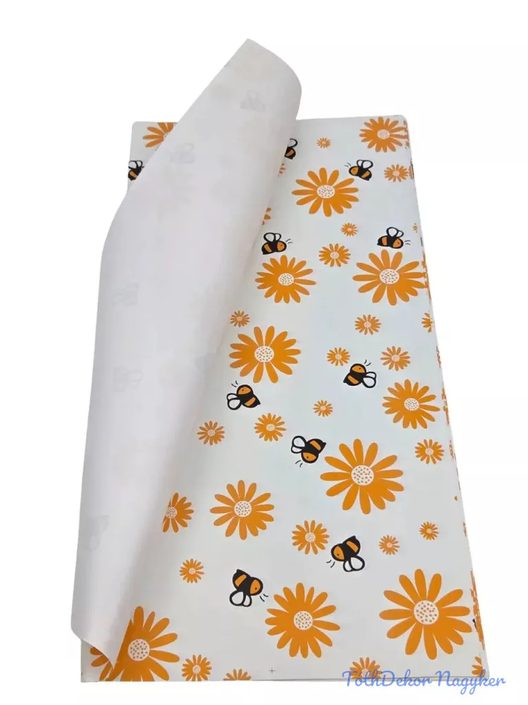 Fólia ív 57x56cm 20db/csomag Méhecske mintás - Narancs virágos