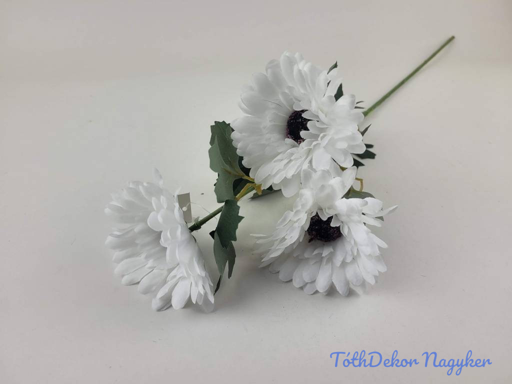 Gerbera 3 fejes selyemvirág ág 61cm - Fehér