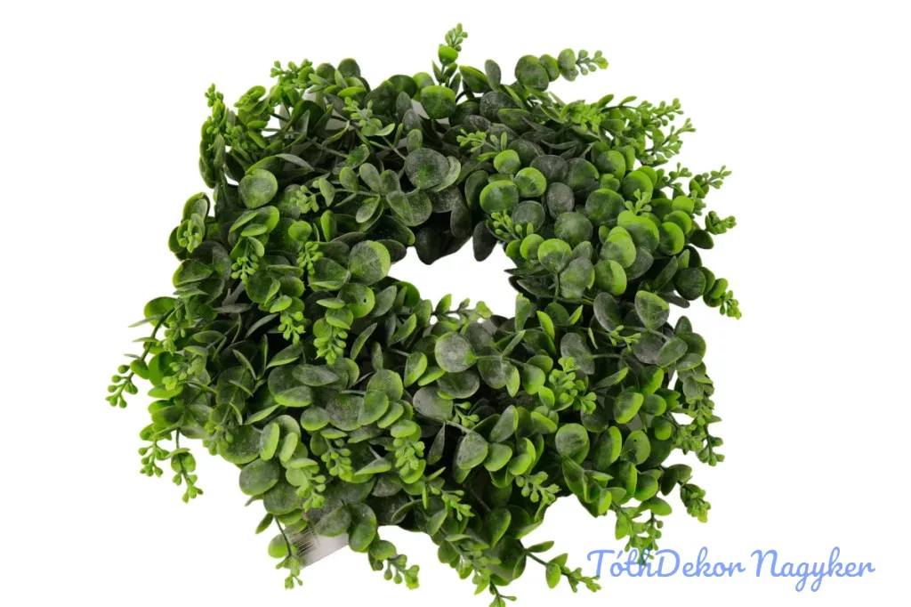 Hamvas eukaliptuszos műzöld koszorú 35 cm