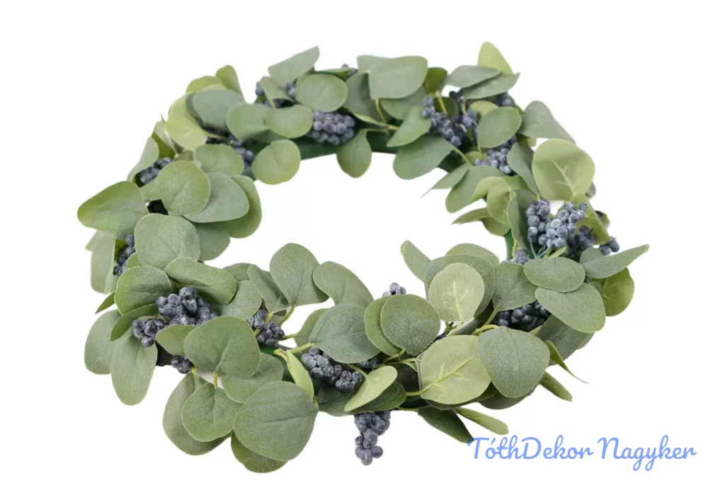 Hamvas levelű bogyós koszorú 40 cm