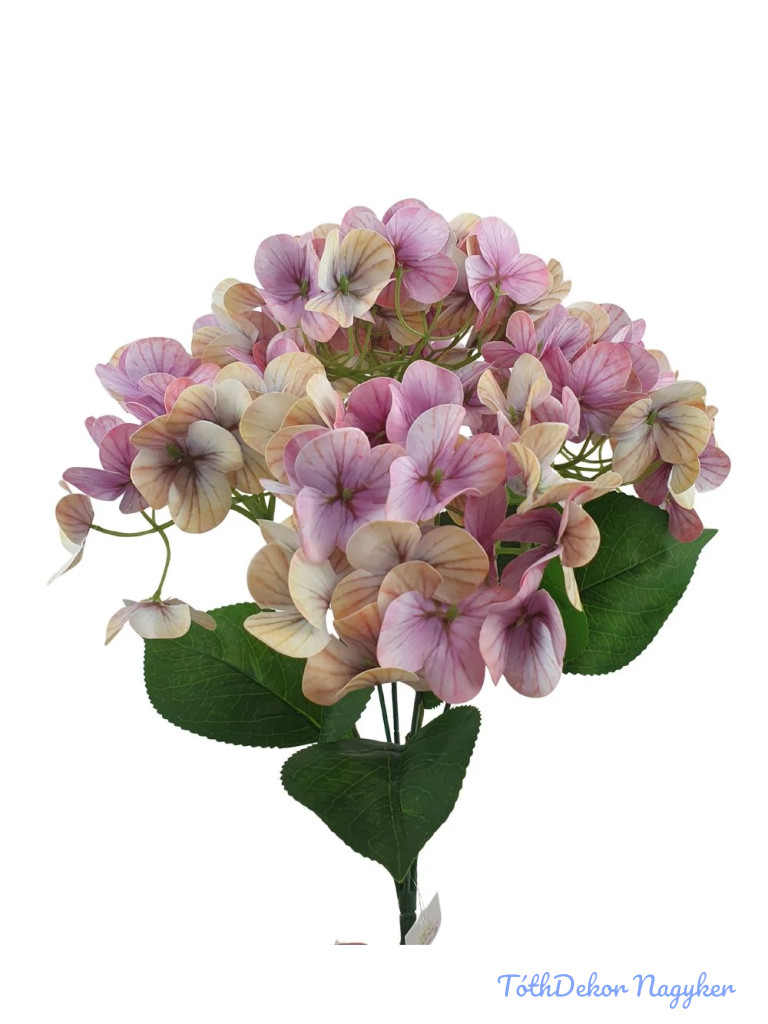 Hortenzia 5 fejes erezett művirág csokor 44cm - Rózsaszín
