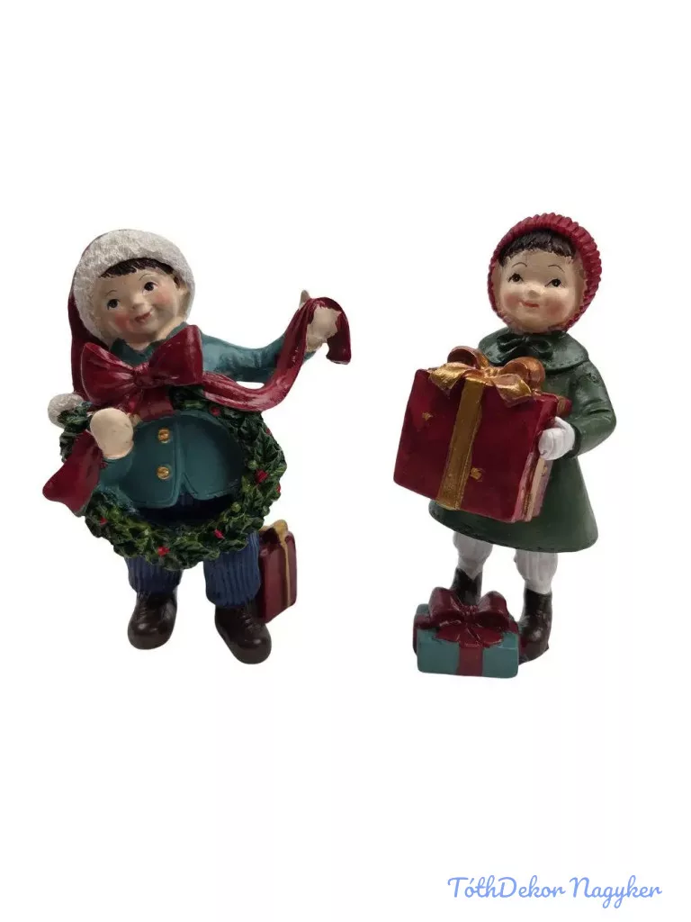 Karácsonyi ajándékkal fiú-lány 12 cm