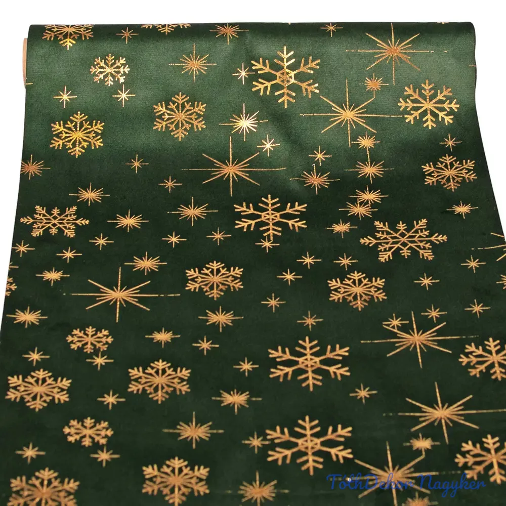 Karácsonyi bársony dekorációs anyag, asztali futó, 28cm x 2.7m - Sötétzöld