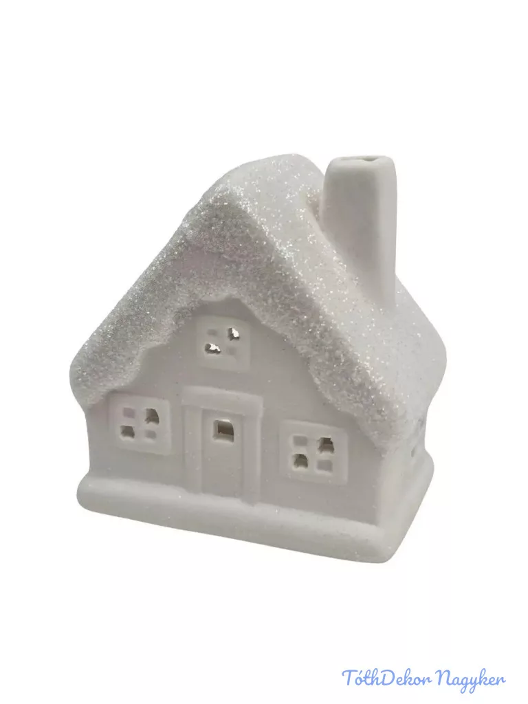 Kerámia fehér téli házikó - Csillámos tetejű B