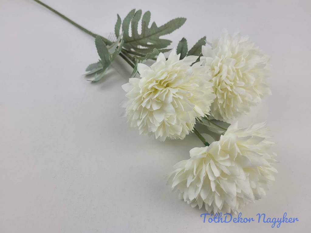 Krizantém 3 fejes selyem ág 63cm - Krém
