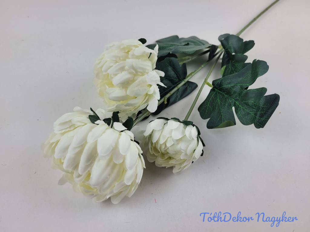 Krizantém 3 fejes selyem ág 68cm - Krém