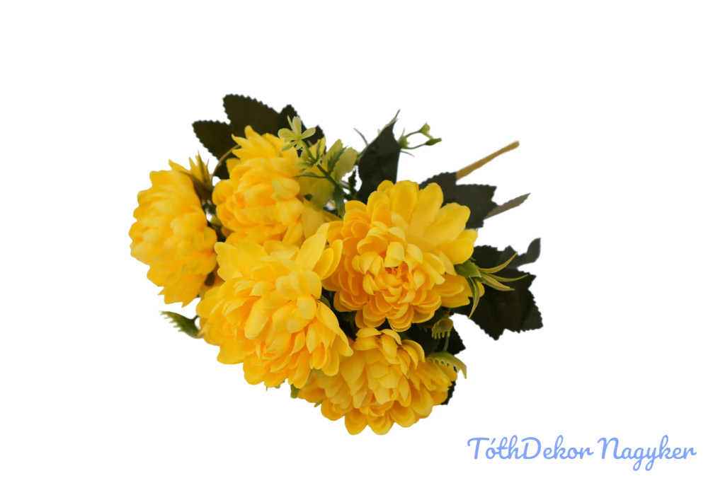 Krizantém 6 ágú selyemvirág csokor 28cm - Sárga