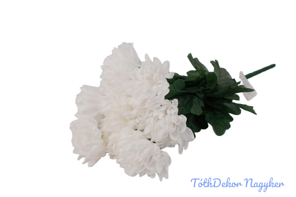 Krizantém 9 ágú selyemvirág csokor 42cm - Fehér