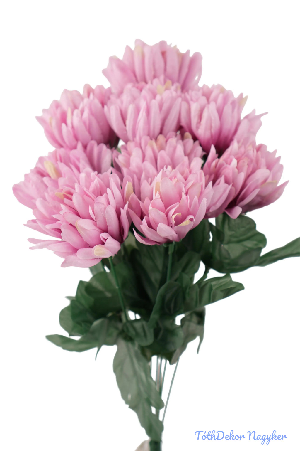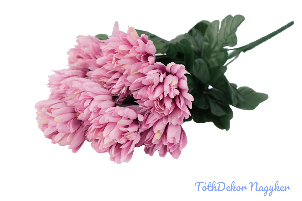 Krizantém 9 ágú selyemvirág csokor 42cm - Lilás Rózsaszín