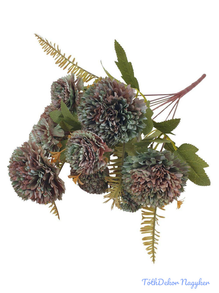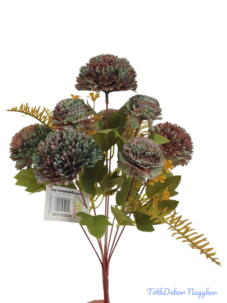Krizantém 9 fejes selyemvirág csokor 40cm - Barna-Menta