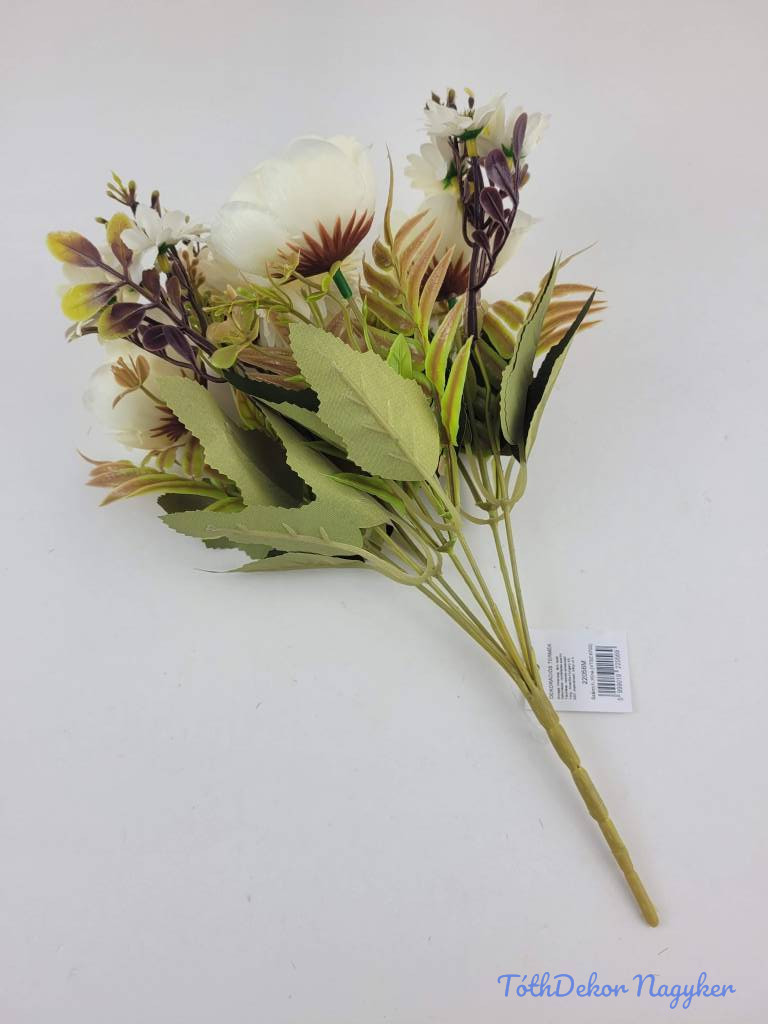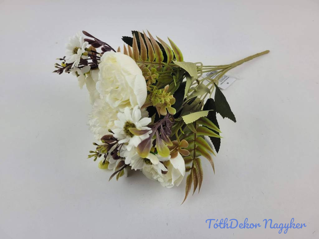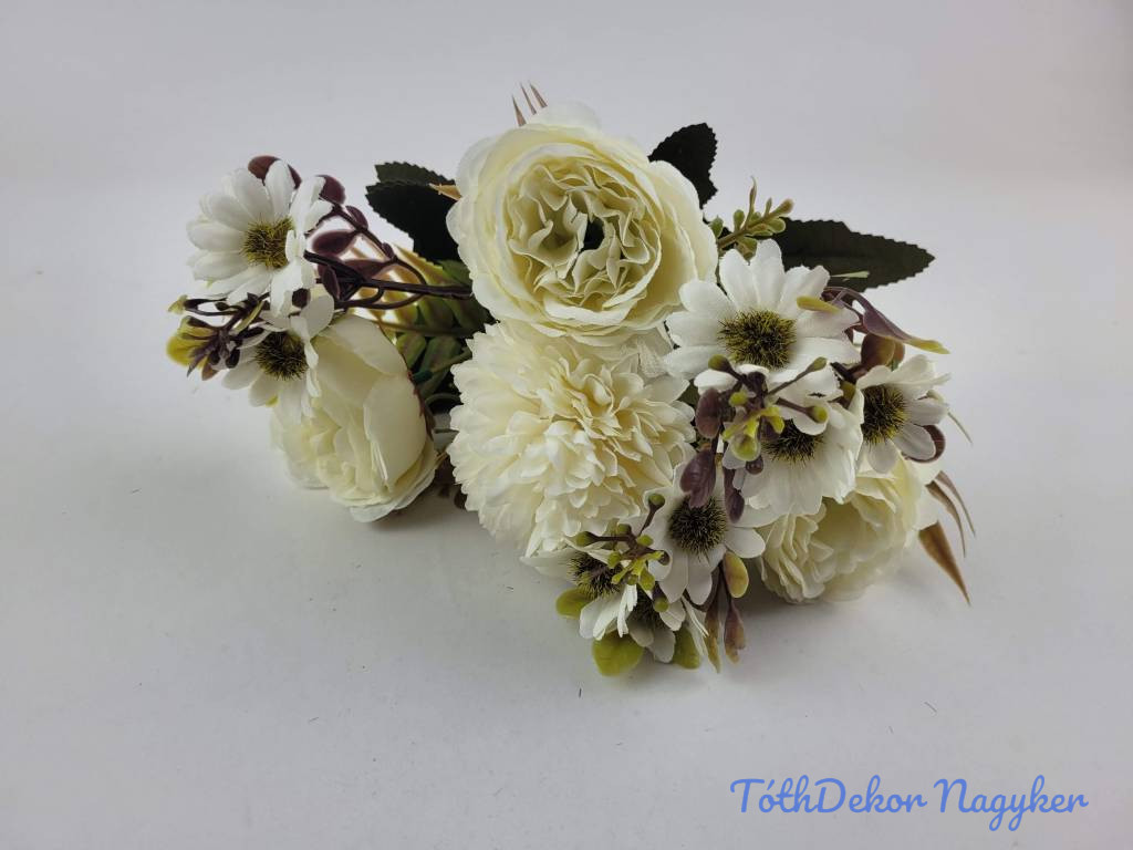 Krizantém-Boglárka 7 ágú selyemvirág csokor 32 cm - Törtfehér