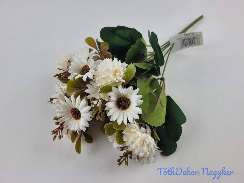 Krizantém - Margaréta 5 ágú selyem csokor 30cm - Krém