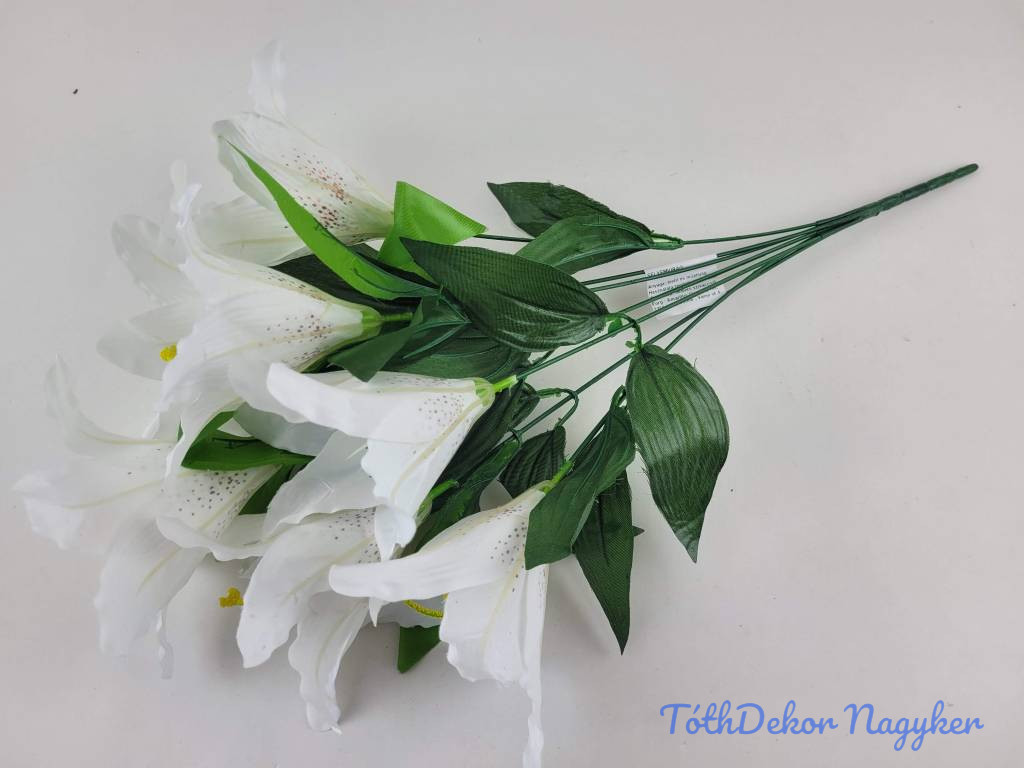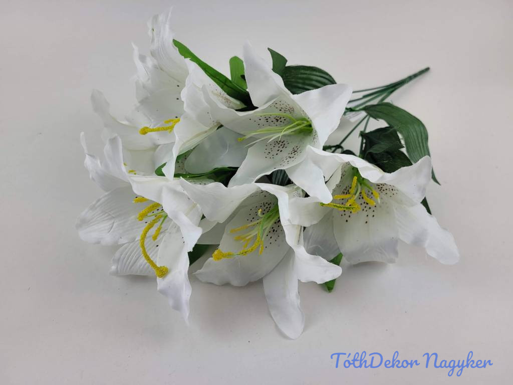 Liliom 7 fejes selyemvirág csokor 49cm - Fehér