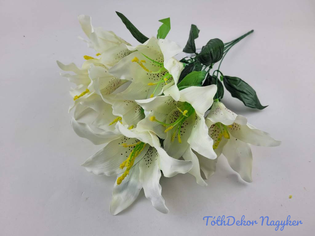 Liliom 7 fejes selyemvirág csokor 49cm - Törtfehér