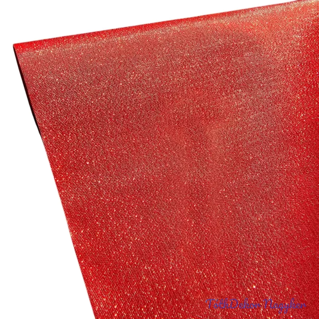 Metál vászon dekorációs anyag, asztali futó, 28cm x 5m - Piros