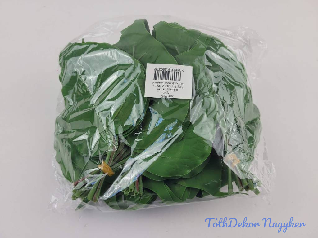 Kerekded csúcsos hegyű mű levél, tűzhető lukas véggel. Egy darab mérete kb 17/14cm. Az ár egy darabra értendő, 72 darabos csomagban rendelhető.