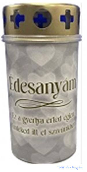 Műanyag fém fedeles mécses mintás 11,5x5,5cm - Édesanyám Ez a gyertya érted égjen, Emléked itt él szívünkben