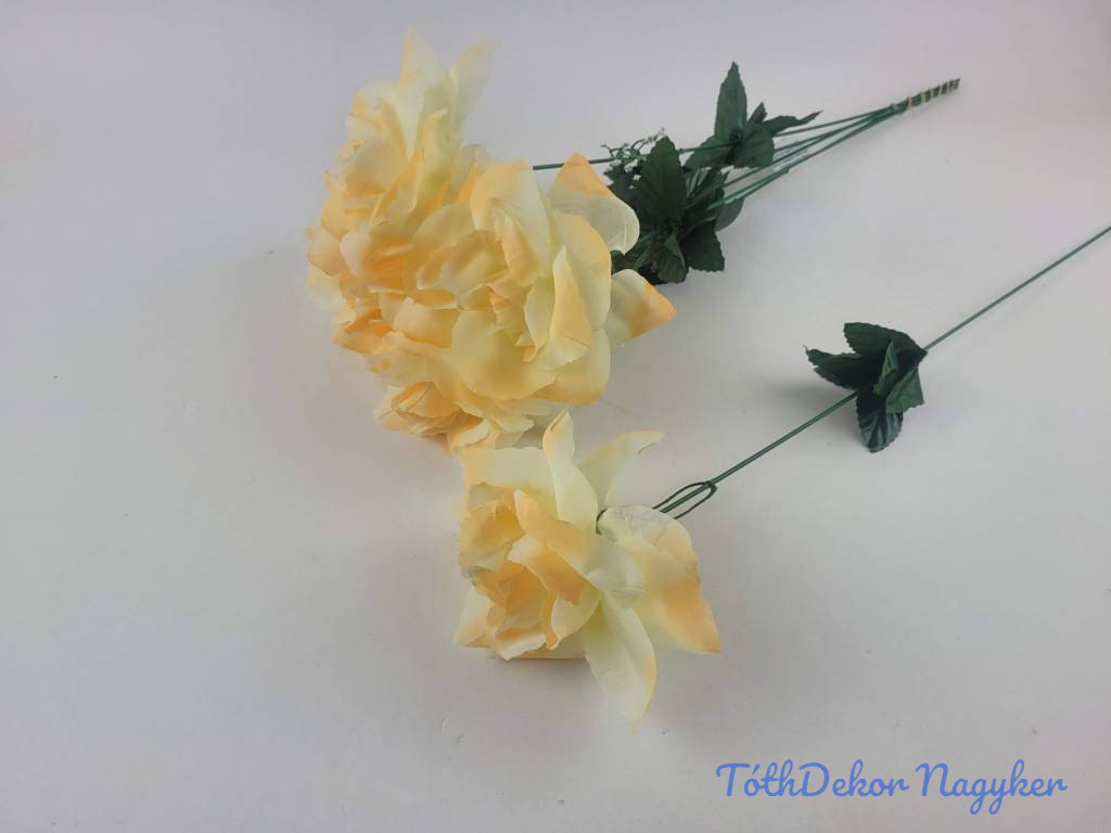 Nagyfejű szálas selyem rózsa 51 cm - Barackos Krém Foltos