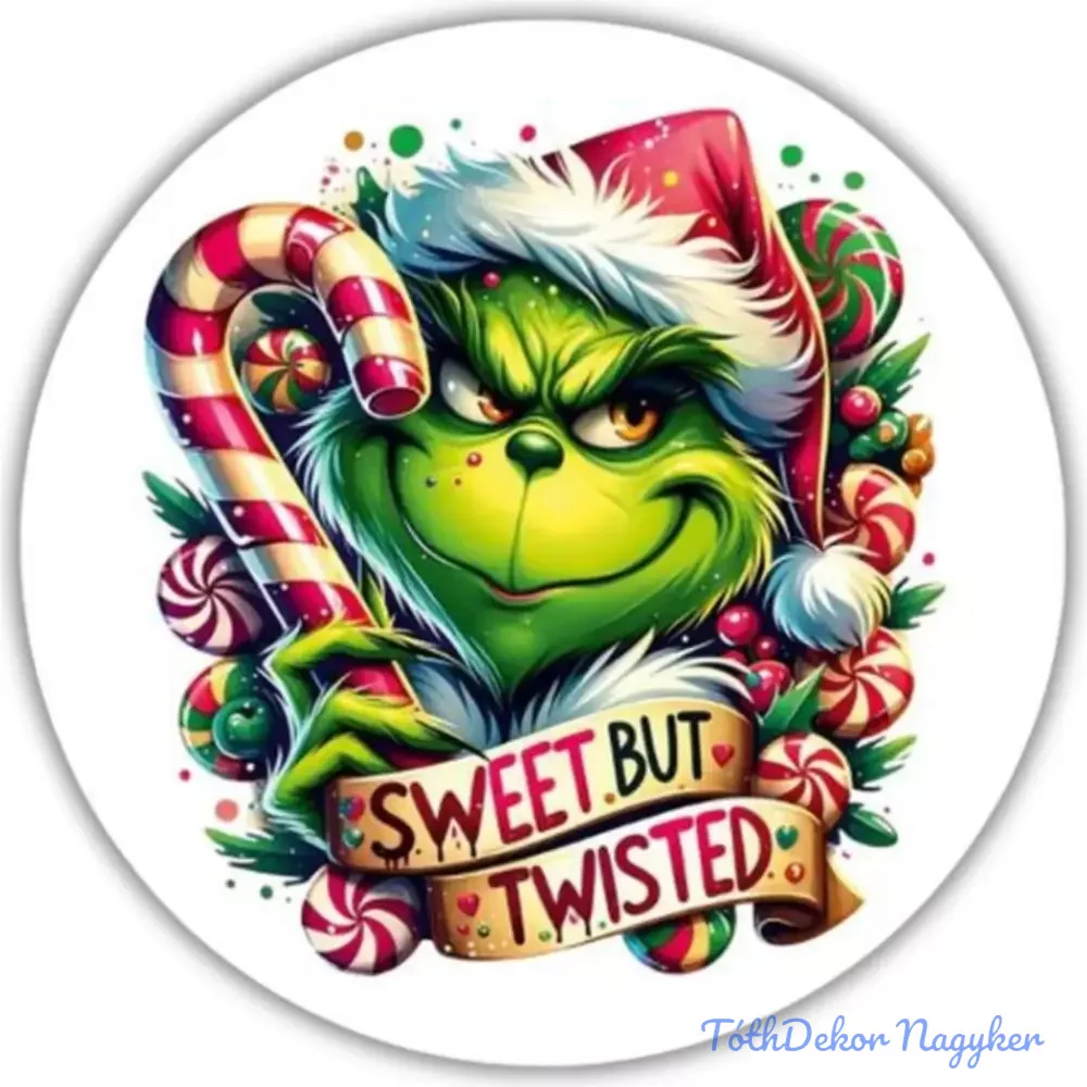 Nyomtatott fa tábla koszorú közép - Cukros grincs 11,8cm