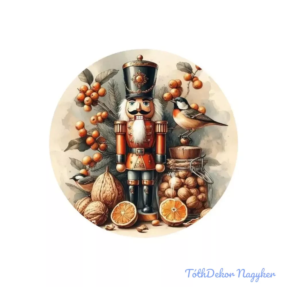 Nyomtatott fa tábla koszorú közép - Diótörő 11,8cm