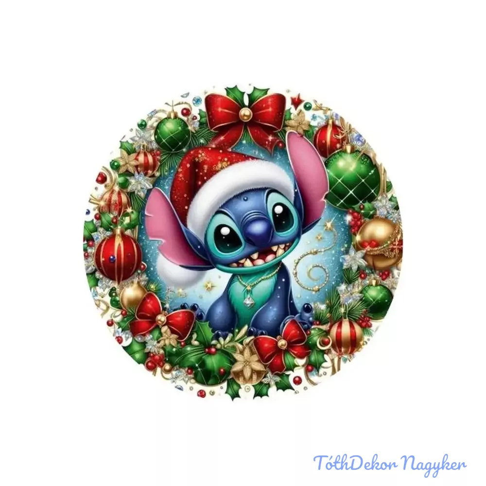 Nyomtatott fa tábla koszorú közép - Karácsonyi stich 11,8cm
