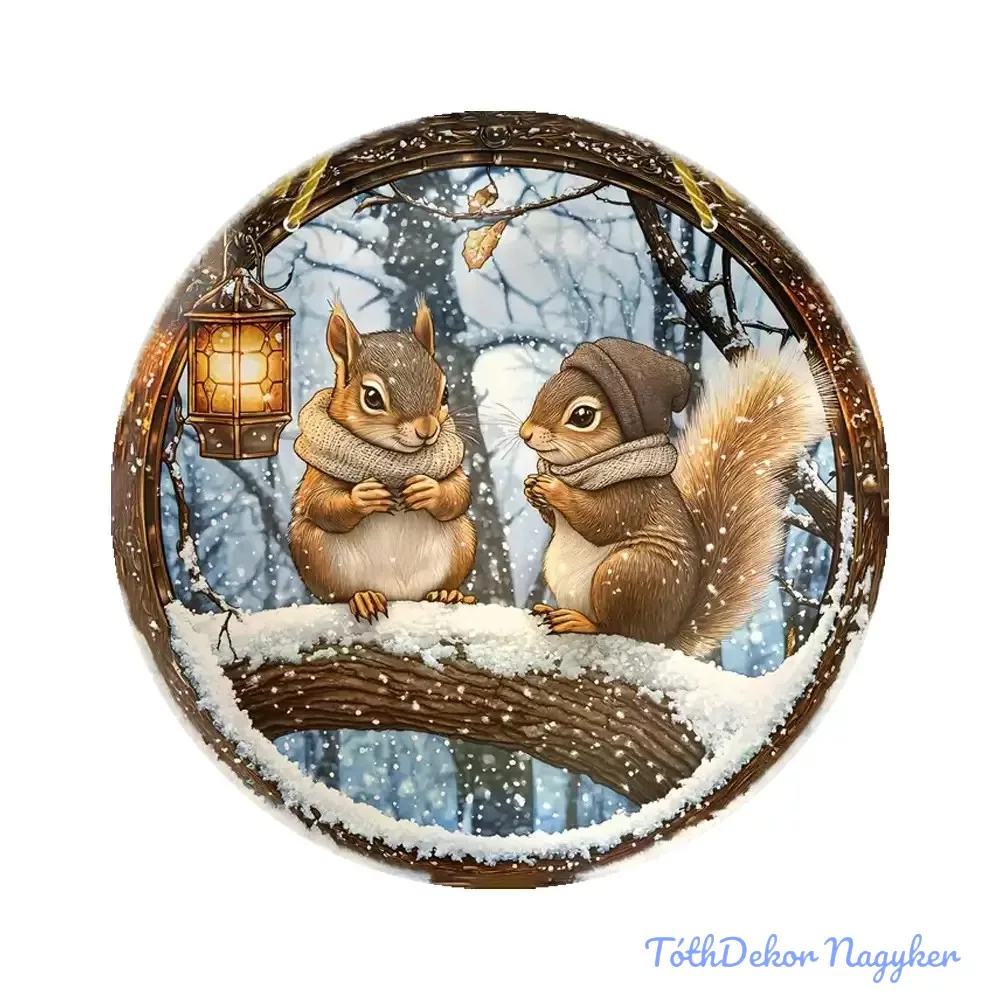 Nyomtatott fa tábla koszorú közép - Két mókus 11,8cm