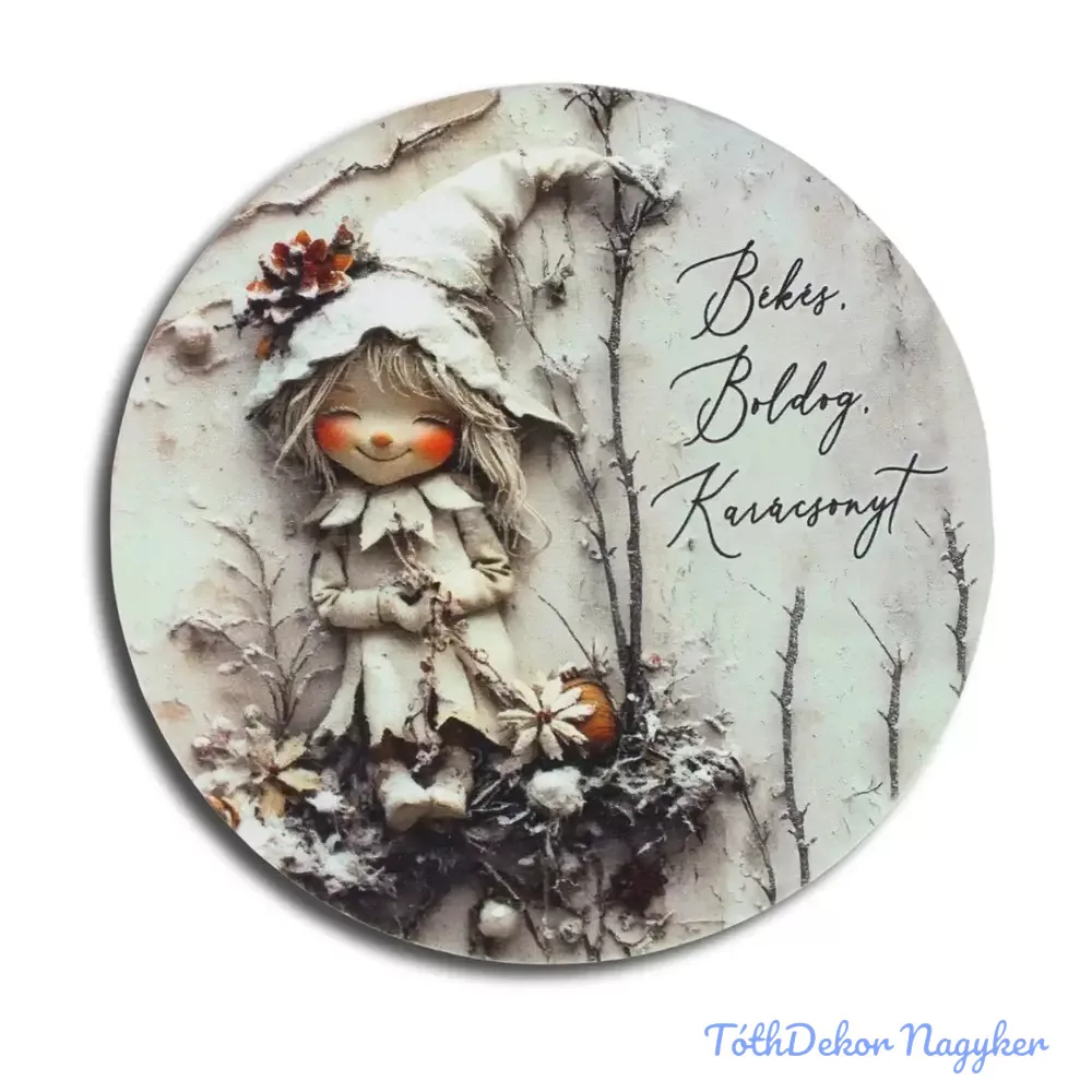 Különleges eljárással készített, nyomtatott egyedi fa tábla. Előnyös lehet mindenkinek, aki szereti a kézzel alkotott készítményeket valamivel kihangsúlyozni. Megjelenésével a dekorációt kiemeli a hétköznapi díszek közül. Átmérője kb 11,8cm.