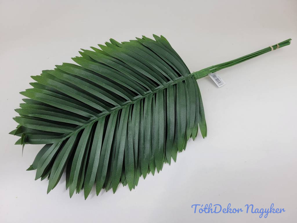 Selyem pálma levél szárral együtt 65 cm hosszú. Csak a levél rész szár nélkül 36x26 cm. Az ár egy darabra értendő, 12 darabosával rendelhető.